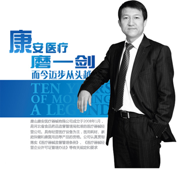 康安醫(yī)療座落于美麗的鳳凰城唐山,是一家專業(yè)致力于經(jīng)營醫(yī)療設(shè)備、醫(yī)療器械、醫(yī)療耗材和康復(fù)保健用品的醫(yī)療企業(yè)。多年以來,在社會各界朋友的支持下,康安醫(yī)療器械公司實現(xiàn)了快速的發(fā)展。在此,謹(jǐn)代表康安醫(yī)療全體員工感謝廣大用戶對康安醫(yī)療產(chǎn)品的信任,感謝我們的合作伙伴對我們工作的支持,我們真誠的希望大家在以后的時間里能夠一如既往的信賴和支持康安醫(yī)療!